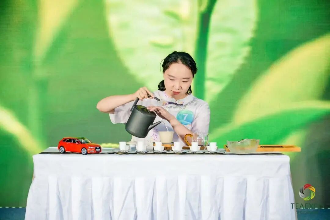 决赛现场,茶香氤氲,韵致高雅。选手们依序登场,在限时18分钟内完成主题阐述、茶艺演示与奉茶收具全过程。