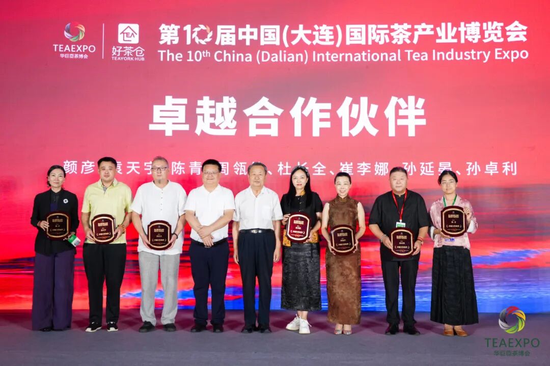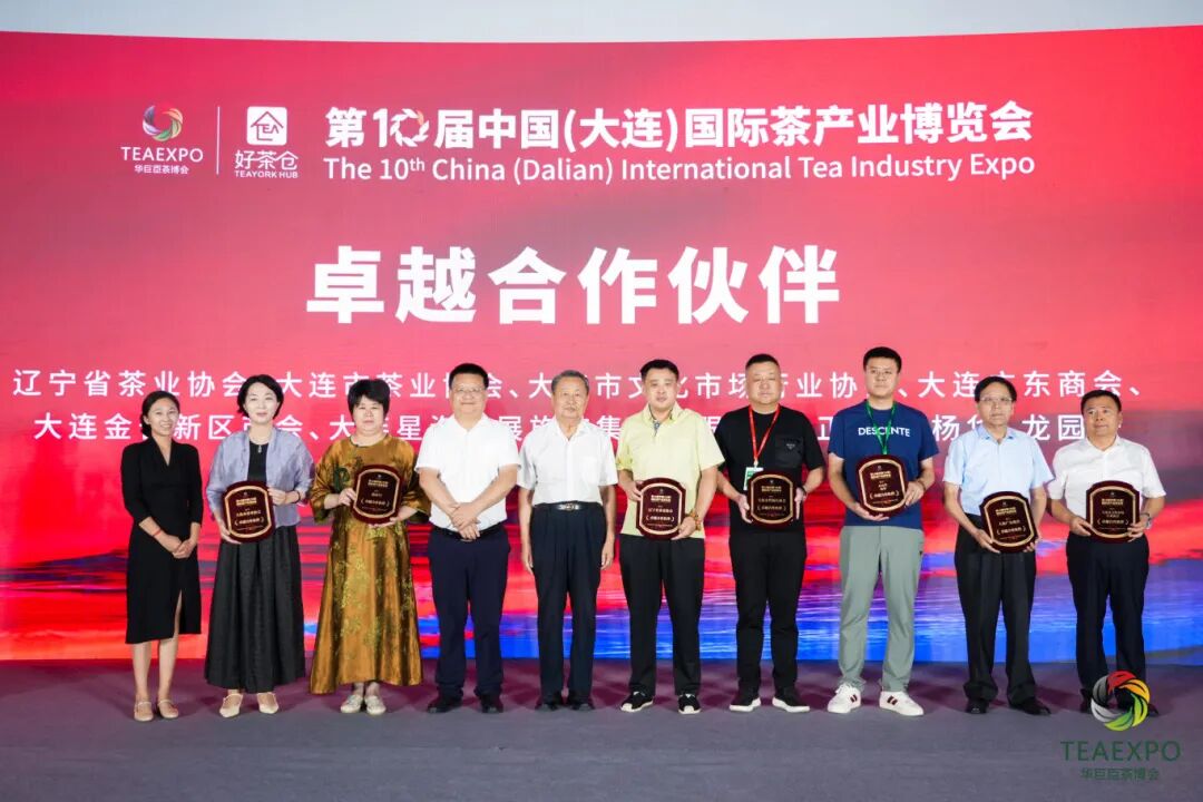 随后举行了隆重的“卓越合作伙伴”颁奖仪式。原大连市政协主席林庆民先生、李大兵总经理共同为辽宁省茶业协会、大连市茶业协会、大连市文化市场行业协会、大连广东商会、大连金普新区商会、大连星海会展旅游集团有限公司、正山堂、龙园号等单位颁发了“卓越合作伙伴”奖,为颜彦、袁天宇、陈青、周瓴竹、杜长全、崔李娜、孙卓利、孙延晏等个人代表颁发了“卓越合作伙伴”奖。